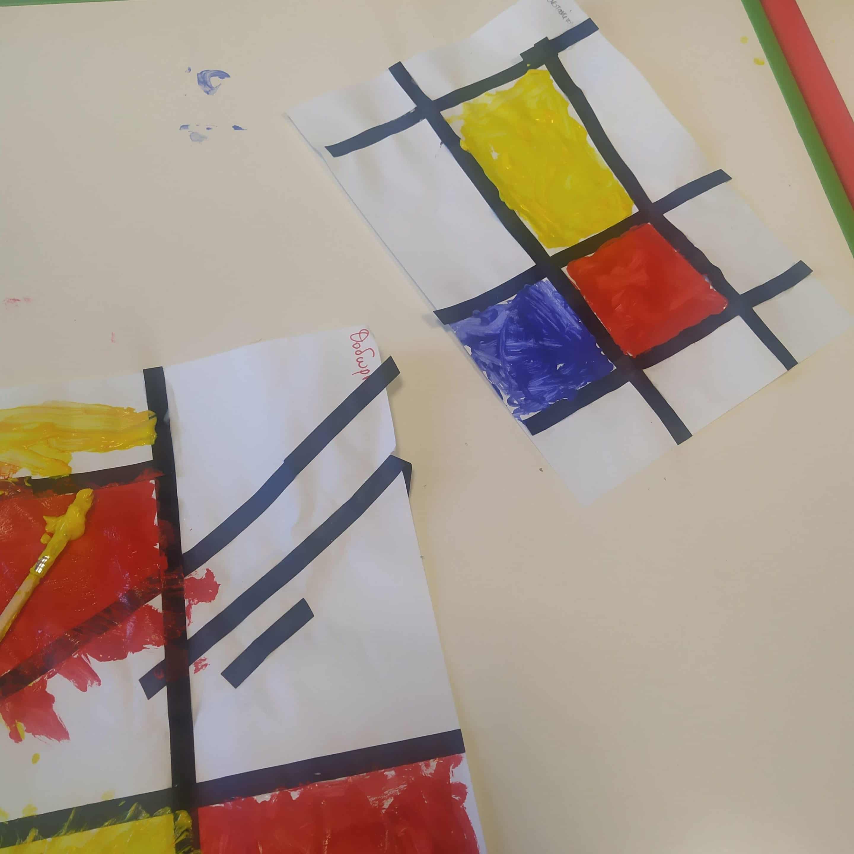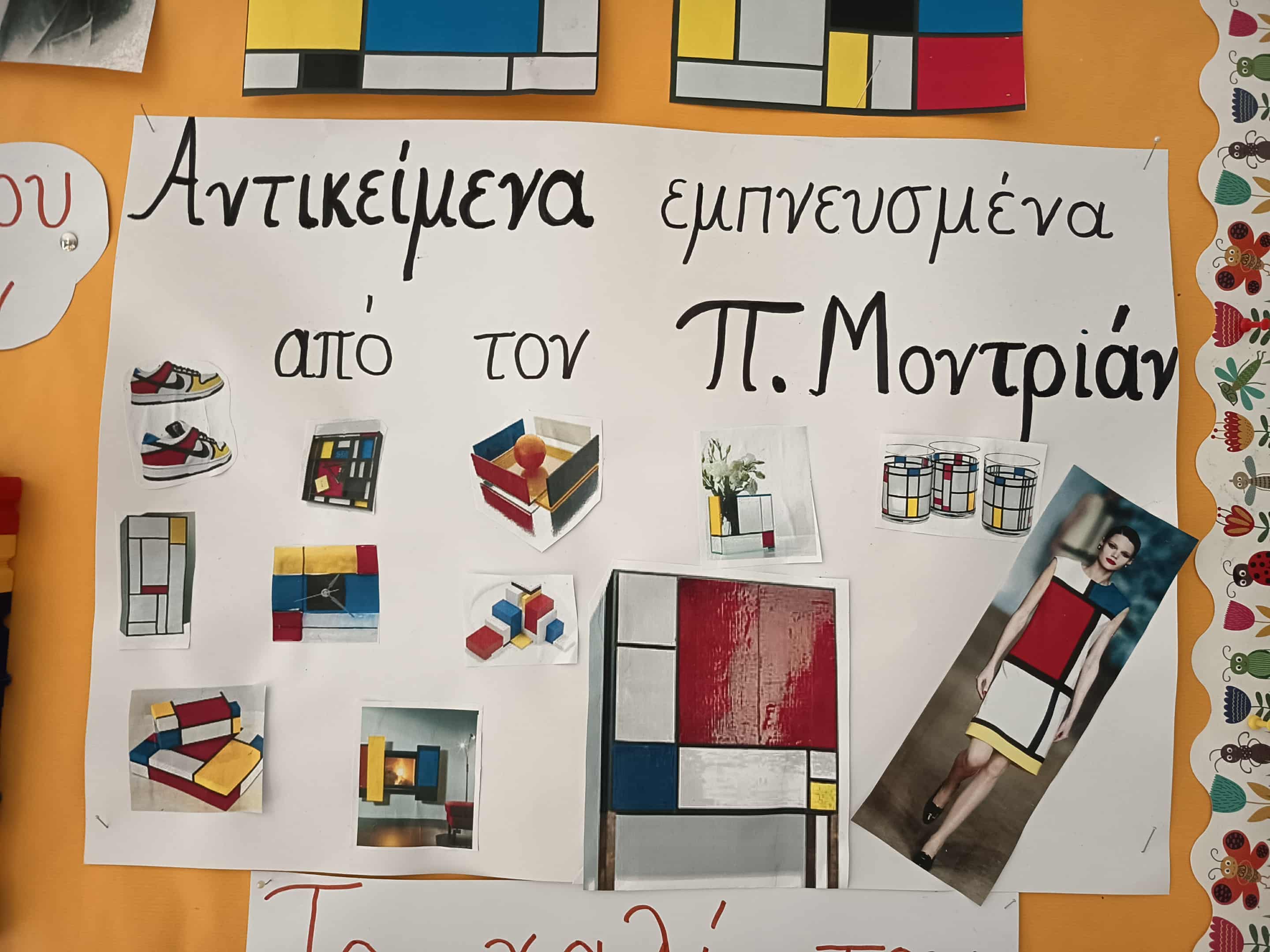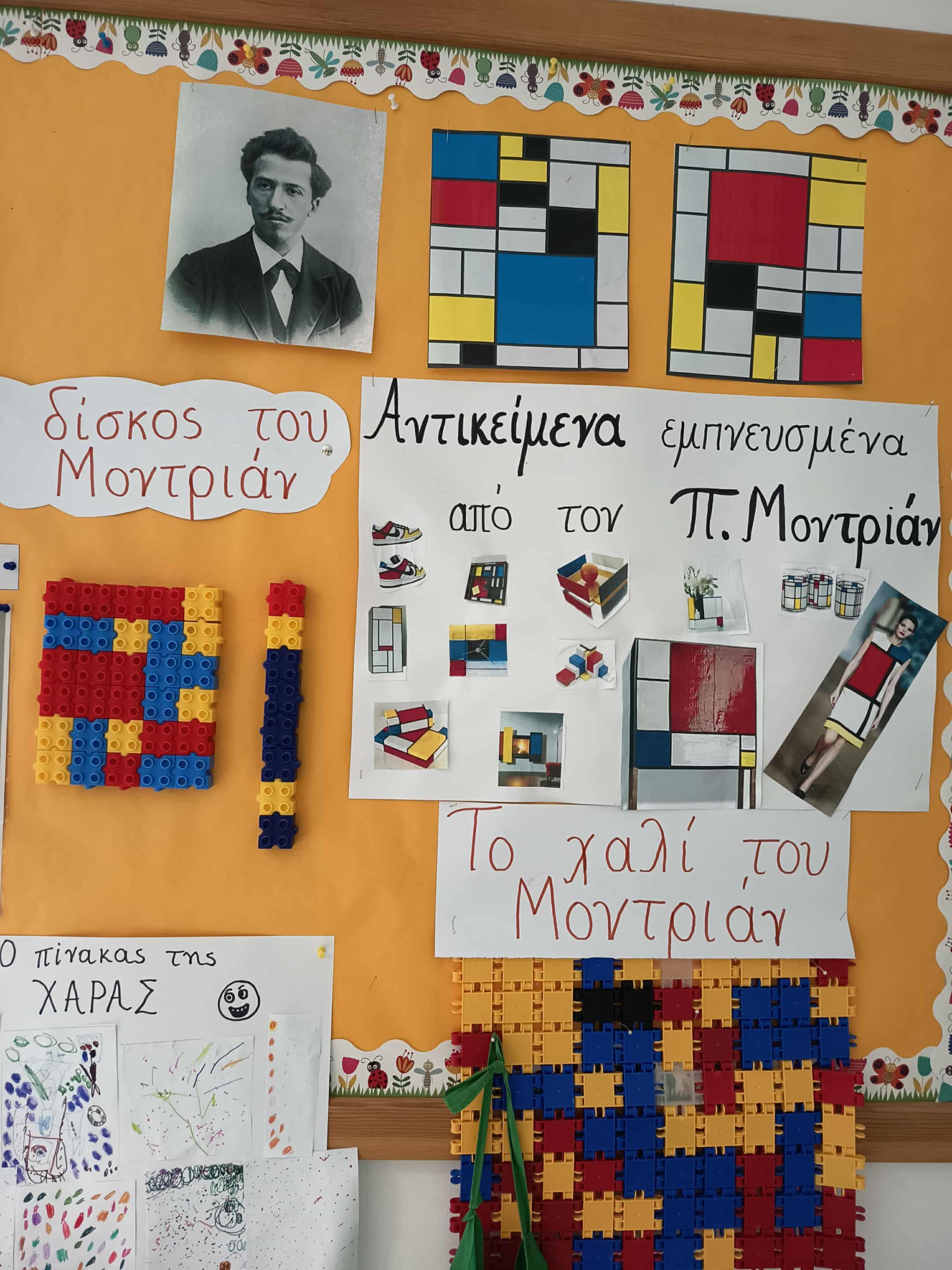 Επιπρόσθετα, αυτόν τον μήνα γνωρίσαμε τον Ολλανδό ζωγράφο Πιτ Μοντριάν (Piet Mondrian), έναν καλλιτέχνη που αγαπούσε τη γεωμετρία, τα χρώματα και την απλότητα. Ο Μοντριάν δεν ζωγράφιζε ανθρώπους ή τοπία, όπως οι περισσότεροι ζωγράφοι. Αντίθετα, του άρεσε να δημιουργεί πίνακες με τετράγωνα και ορθογώνια, που τα χώριζε με μαύρες γραμμές και τα γέμιζε με τα τρία βασικά χρώματα: