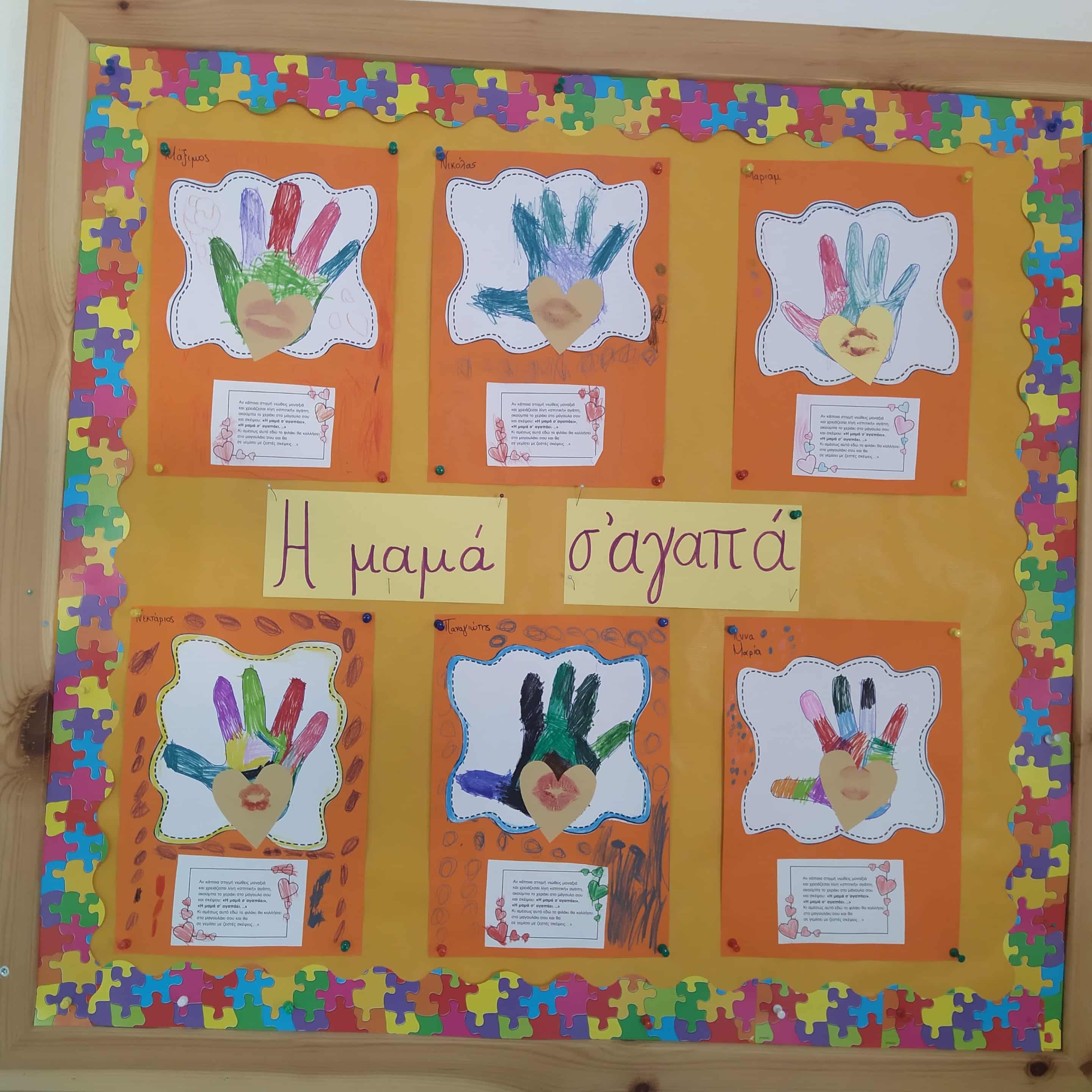 Παράλληλα παίξαμε παιχνίδια συνεργασίας και με το αποτύπωμα της παλάμης μας θυμηθήκαμε τα πρώτα συναισθήματα που είχαμε τις πρώτες μέρες στο νηπιαγωγείο.